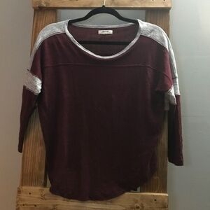 Madewell Linen Burgundy & Grey Frontrunner Tee