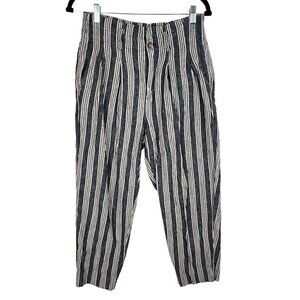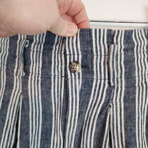 Madewell Linen Cotton Blend Paperbag Pants High Rise Blue Railroad Stripe Pant