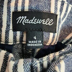 Madewell Linen Cotton Blend Paperbag Pants High Rise Blue Railroad Stripe Pant 4