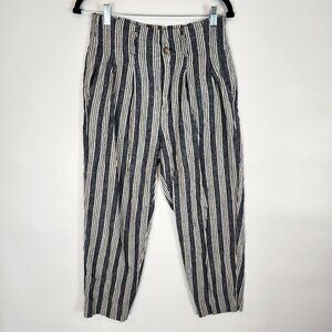 Madewell Linen Cotton Blend Paperbag Pants High Rise Blue Railroad Stripe Pant