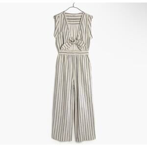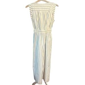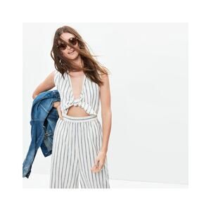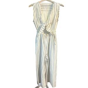 Madewell | Linen & Cotton Tie-Front Culotte Jumpsuit | White with Blue Ikat Stripes | Women’s Size 4