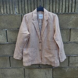 Madewell Linen Dorset Blazer in Gingham Check Womens Size L NWT