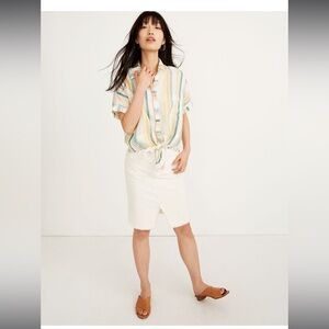 Madewell Linen Short-Sleeve Tie-Front Shirt in Pineapple Stripe Size Medium