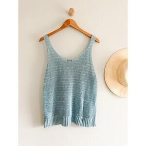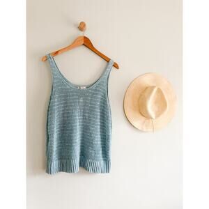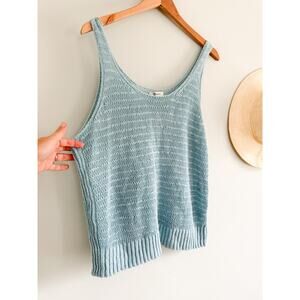 madewell sweater tank, linen knit tank, dusty aqua blue top, madewell new with tags, lightweight knitwear, open stitch tank, linen blend summer top, sleeveless sweater tank, beach vacation outfit, coastal casual top, soft blue knit, breathable summer essential, elevated basics tank, resort capsule style, relaxed chic layering piece
