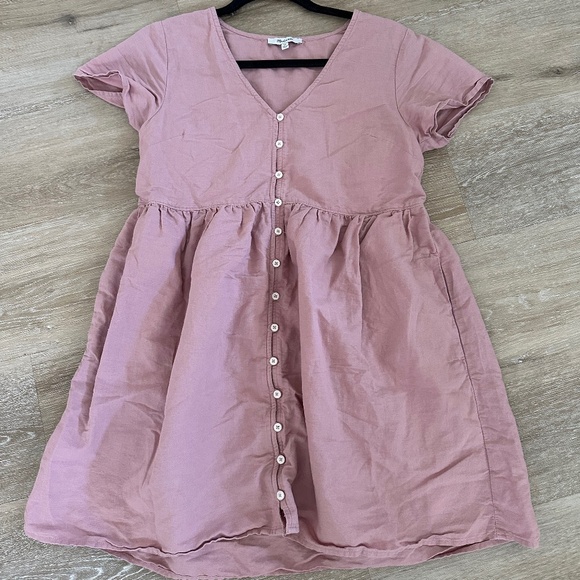 Madewell Linen-Blend Alexandra Button-Front Mini Dress Womens XS Pastel Pink