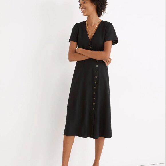Madewell Linen-Blend Button-Wrap Midi Dress