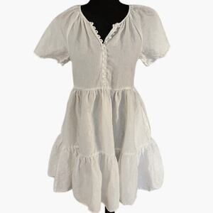 Madewell Linen-Blend Flutter Sleeve Tiered Mini Dress with Pockets, size XXS. Could fit up to a small medium.