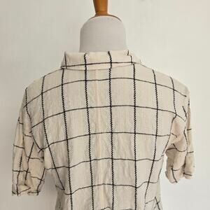 Madewell Linen-Blend Resort Crop Shirt in Windowpane Button Front Women XS