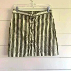Madewell Linen/Cotton Gray & White Stripe Laced Up Mini Skirt Size 4
