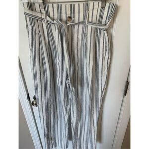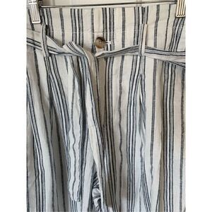 Madewell Linen-Cotton Paperbag Pants in Dark Baltic Stripe ankle pants size 6