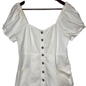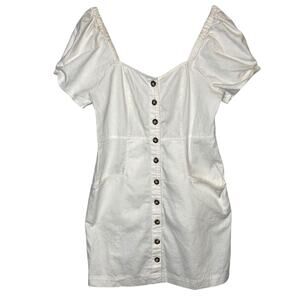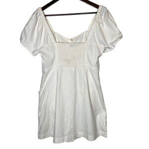 Madewell Linen-Cotton Puff-Sleeve Mini Dress Cream size 10