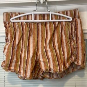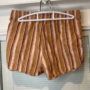 Our favorite rainbow striped pull-on shorts with—yay!—pockets. Supercomfortable and cool in a linen-cotton blend, they swap in effortlessly for a pair of cutoffs.