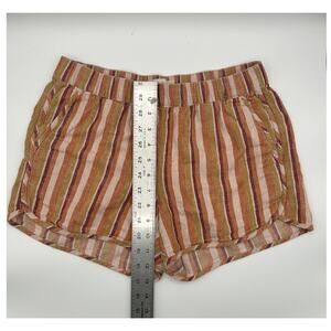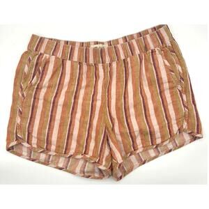 Madewell Linen/Cotton Pink/Tan Rainbow Stripe Pull On Retro Jogger Hot Shorts Womens size Extra Small