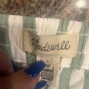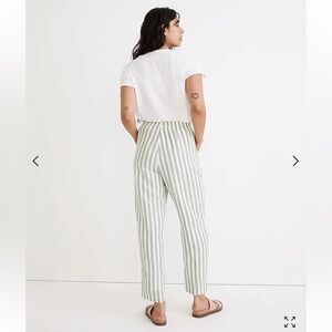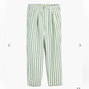 Madewell Linen-Cotton Track Trousers in Stripe SZ 6 Versailles Green New