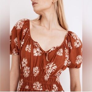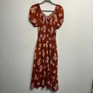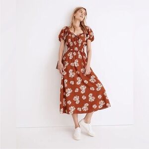 Madewell Linen-blend Sophia Midi Dress in Rusty Torch Size XS Smocked Waist