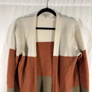 Madewell Long Cardigan Women's XS Brown Striped Wool Blend Open Front Sweater