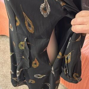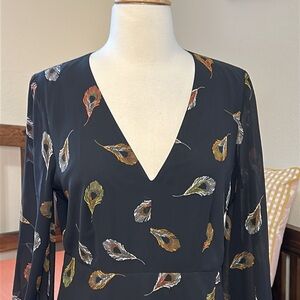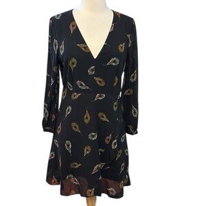 Madewell Long Sleeve Poppy Dress Peacock Feathers Mini V Neck 3/4 Sleeves Sz 6