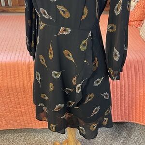 From website: A wear-all-season mini dress in an easy feather print that was hand drawn by one of our designers. With its flattering wrap bodice and sweet ruffled hem, this is the kind of effortless style you'll find any excuse to wear.