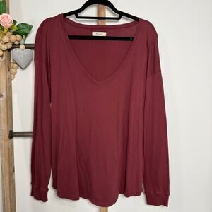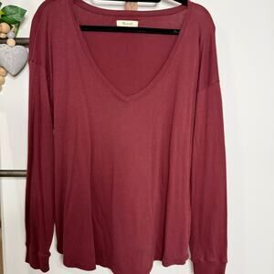 Madewell Long Sleeve V Neck Maroon Shirt Size Medium