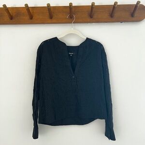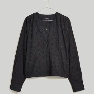 Madewell Long-Sleeve Popover Top in Eyelet – Size X-Small