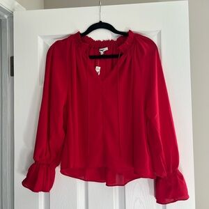 Madewell Long-Sleeve Tie-Neck Top in Crimson Berry, NWT