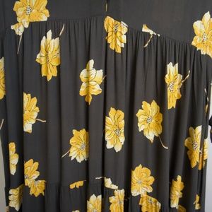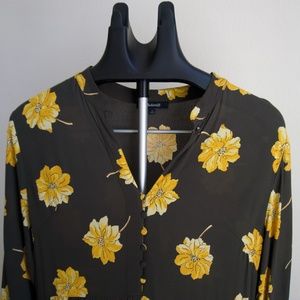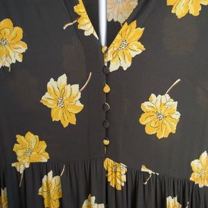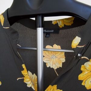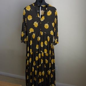 Beautiful and perfect for Fall; dark green with yellow flowers, button front, long sleeve 100% viscose maxi dress from Madewell. Lightweight and flow-y.