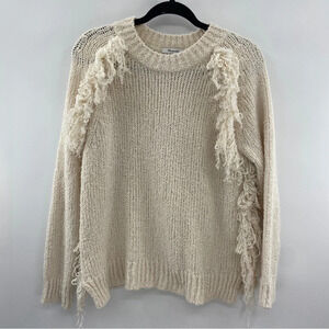 Madewell Loop Edge Fringe White Pullover Sweater Size Medium