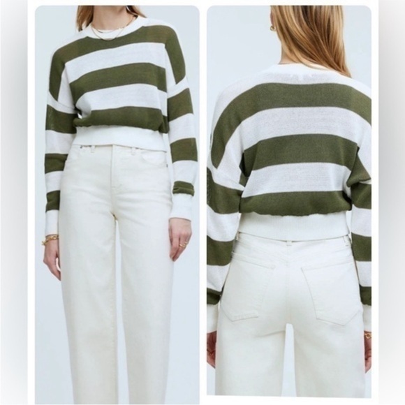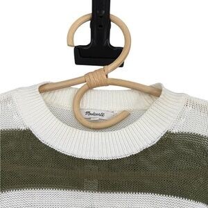 Madewell Loose Open Knit Crewneck Lightweight Sweater White Green Stripe NWT XS