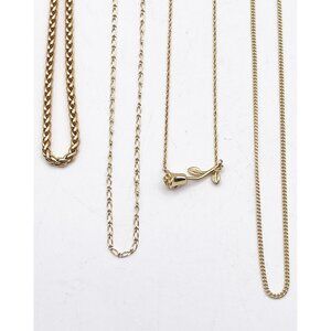 Madewell Lot Of (4) Gold Tone Chain Necklaces. One has a dainty Rose pendant. Good preowned condition. Please see photos for details and measurements. Thanks for looking.