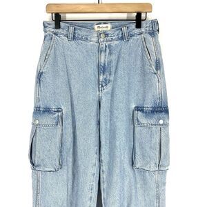 Madewell Low Slung Cargo Jeans Size 26 Womens Blue Denim Mid Rise Straight Leg