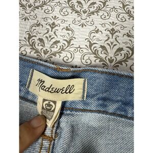 Madewell low slung straight jeans. Appears to be missing a button at the top. Note how the jeans close. No other issues. See measurements in pictures