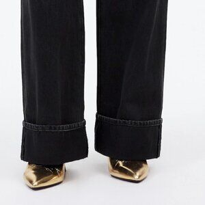 The cut: designed to be slung low, these full-length jeans have a baggy wide leg and cuffed hem.