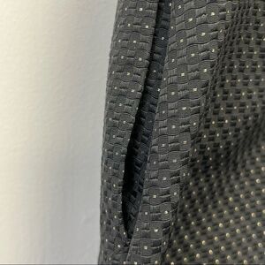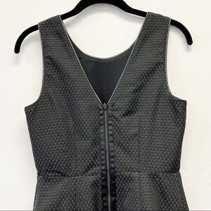 Madewell Lowlight Black & Gold Shimmer Dot Dress Size 2- Sleeveless mini dress made from a textured woven polka dot fabric featuring a double hem and exposed back zipper trimmed with ribbon.