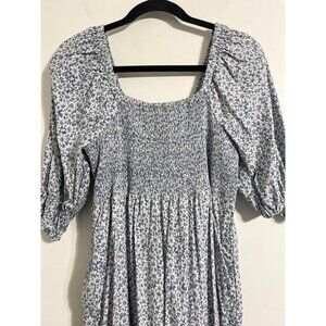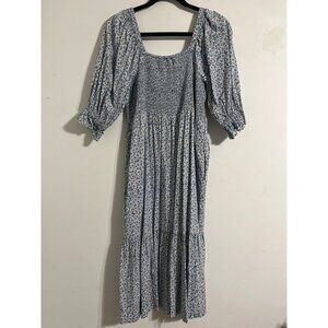 Madewell Lucie Smocked Floral Midi Dress With Puff Sleeves Medium