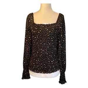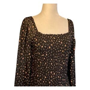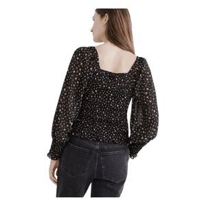 Madewell Lucie Smocked Georgette Blouse Black Floral Print Bubble Long Sleeve S