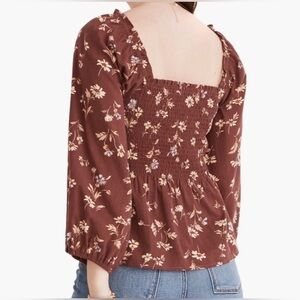Madewell Lucie Smocked Square Neck Cotton Peplum Blouse Brown Floral 10