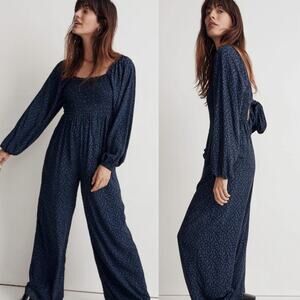 Madewell Lucie Tie-Back Long-Sleeve Jumpsuit in Carmine Floral NWT Size 6