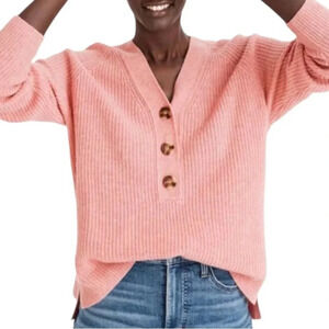 Madewell Lyle Merino Wool Blend Ribbed Henley Buttoned Sweater