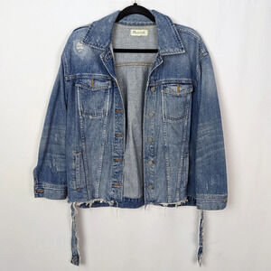 Madewell M The Oversized Denim Jean Jacket Distressed Faded Trucker Chest Pocket