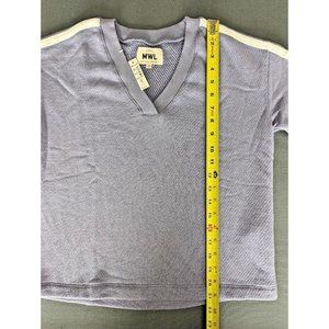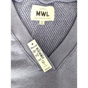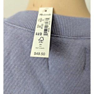This Madewell MWL Airyterry V-Neck Sweatshirt Tee in varsity-striped edition is brand new with tags. It's purple and size XS. Made from 98% cotton and 2% elastane, it's perfect for women who love comfort and style.