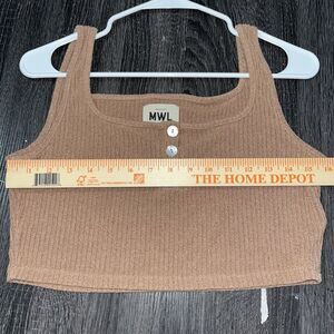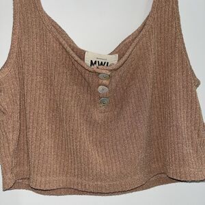 Madewell MWL Large Sleeveless Ribbed Knit Square Neck Henley Crop Tank Top Brown