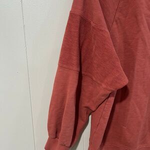 Super soft and comfy Madewell MWL pullover sweatshirt in a warm rust red color. Features raglan sleeves, slouchy balloon-style sleeves, and a relaxed fit — perfect for lounging, errands, or layering.