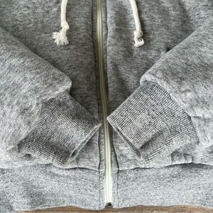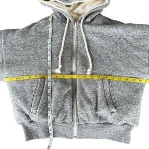 Madewell MWL Make Weekends Longer Reversible Hoodie Puffer Jacket. Women’s size XXS. Heather Gray on one side and Cream on the other. Hood with draw strings, pockets (only on Gray side), full zip closure, cropped length. Very thick and cozy. Good preowned condition with light wash wear. The Cream side has some minor uneven coloring where some areas appear more yellow than others. This is hard to tell. See last pic for example.