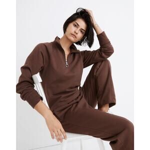 Madewell MWL Ribbed Half-Zip Raglan Sweatshirt Hot Cocoa size XL