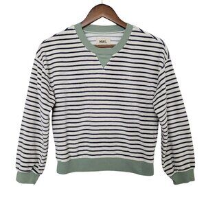 Madewell MWL Velour Crewneck Sweatshirt in Stripe Womens Size XS Soft Comfy