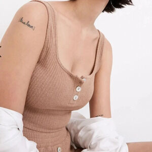 Madewell MWL tan soft stretchy Ribbed Crop Tank top size XL
