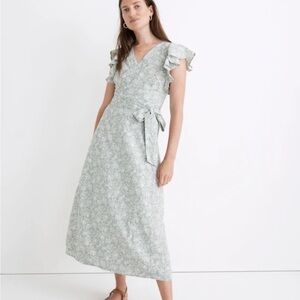 Madewell Madewell womens Linen-Blend Ruffle-Sleeve Wrap Midi Dress in Piazza Floral / has one belt loop in working condition