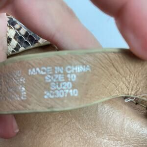 Supercute and soo comfy, these espadrille sandals have classic jute soles but asymmetrical snake-embossed leather straps for a modern twist.