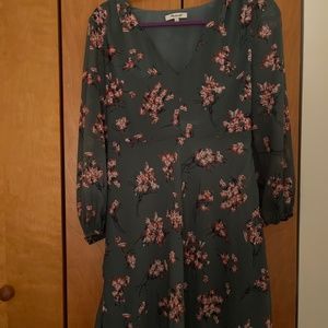 Green and pink floral dress 3/4 sleeve 100% polyester Machine washable