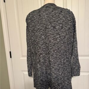 Stay cozy and stylish with this elegant gray open-front sweater. Perfect for layering, this versatile piece is a must-have for any wardrobe. In excellent preowned condition.